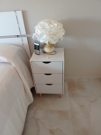 Comodino adatto all altezza del mio letto , imballaggio ottimo, spiegazione di montaggio semplici e chiare cassetti facilmente scorrevoli , soddisfatta per qualità e prezzo ,l ho abbinati alla cassettiera stesso stile