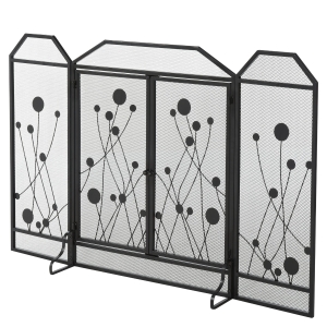 HOMCOM Parascintille Camino Pieghevole 3 Pannelli Metallo Nero