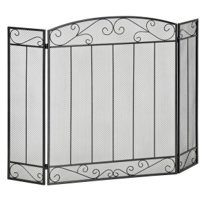 HOMCOM Parascintille Camino Pieghevole a 3 Pannelli in Metallo Classico, adatto per caminetti con apertura da 50-90 cm 96x60cm, Nero | Aosom Italy