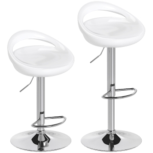 HOMCOM Set di 2 Sgabelli Alti Moderno da Bar Girevoli con Poggiapiedi, Seduta Regolabile in Acciaio, Struttura in metallo, Bianco | Aosom Italy