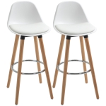 HOMCOM Set 2 Sgabelli Alti da Bar Stile Nordico con Schienale, Cuscino e Poggiapiedi in acciaio, struttura in legno, Bianco | Aosom Italy