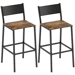 HOMCOM Set 2 Sgabelli Bar con Schienale e Poggiapiedi Marrone