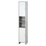 kleankin Colonna Bagno con 2 Armadietti e 2 Vani Aperti in Legno Effetto Cemento, 30x30x180cm