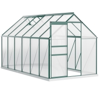 Outsunny Serra da Giardino in Policarbonato 190x375x199cm, con Finestra Apribile e Porta Scorrevole, Struttura in Alluminio, Verde(m-4)