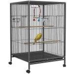 PawHut Gabbia per Uccelli in Acciaio e PP con 5 Porte, 2 Posatoi e Vassoio Estraibile, 48x46x74 cm, Grigio